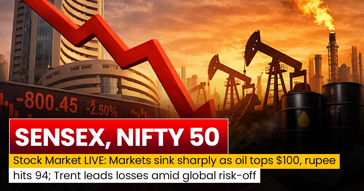 Sensex, Nifty 50 | Stock Market LIVE: Markets sink sharply as oil tops $100, rupee hits 94; Trent leads losses amid global risk-off